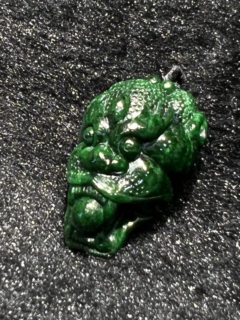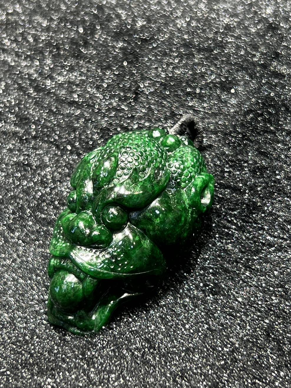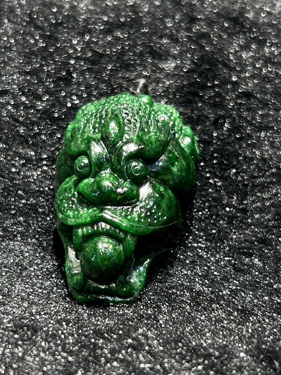 The jade pendant is well carved as a dragon head, the jade pendant has intense dark green.