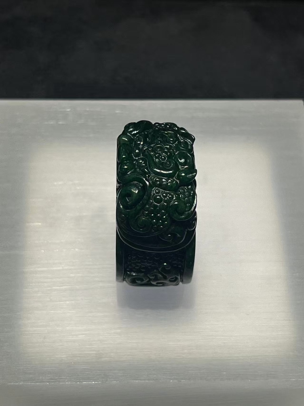 Ideal for collectors and connoisseurs, this jadeite dragon thumb ring unites timeless artistry, powerful symbolism, and exceptional craftsmanship in one remarkable piece.