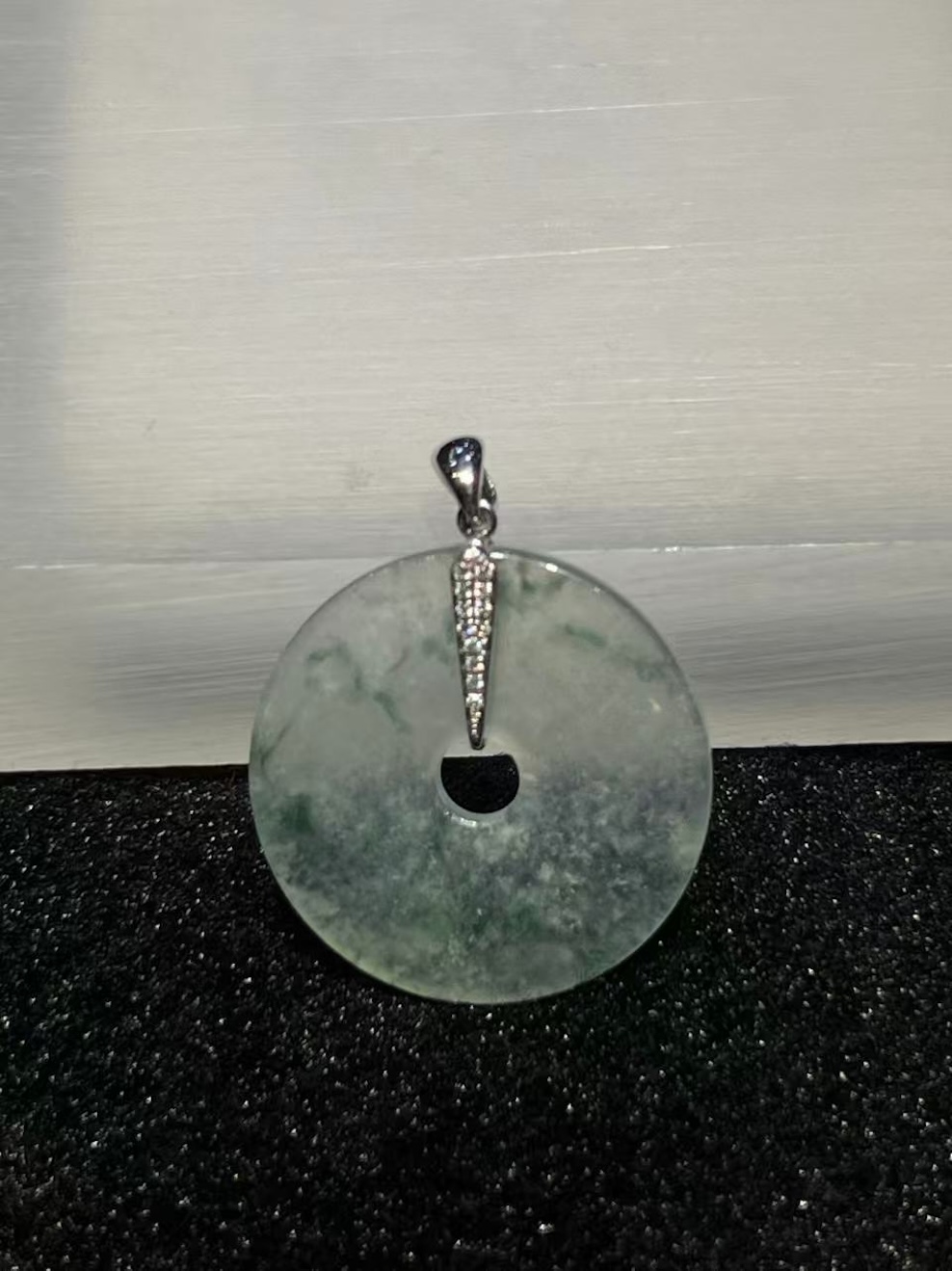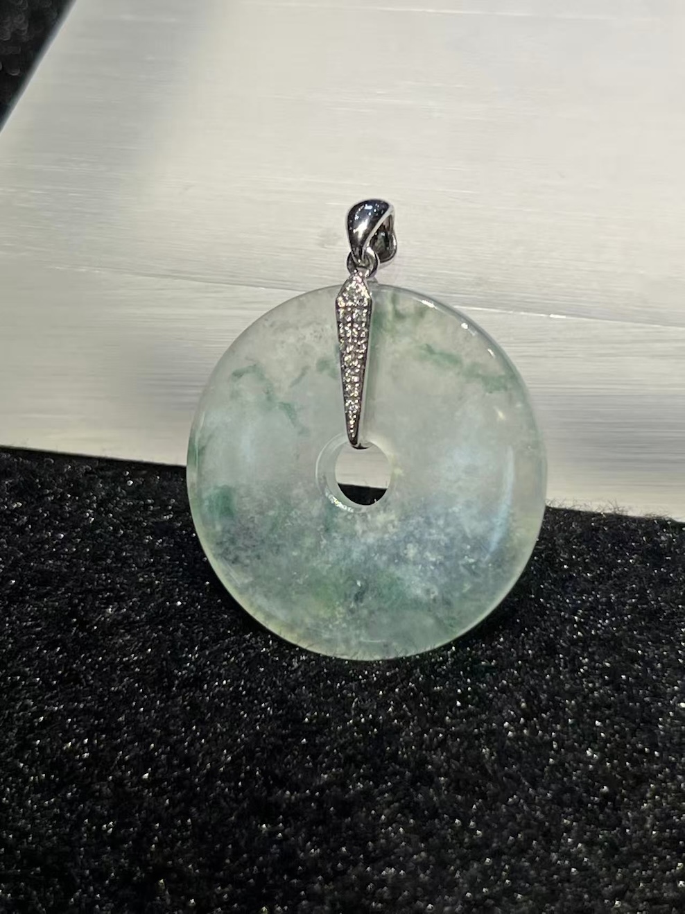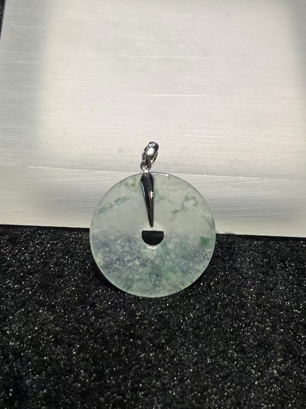 This safety knot pendant is carved from highly translucent icy jadeite, displaying a gentle interplay of light and depth. As light moves across the surface, the jade reveals soft internal textures and natural clouding, which are typical of genuine icy jadeite.