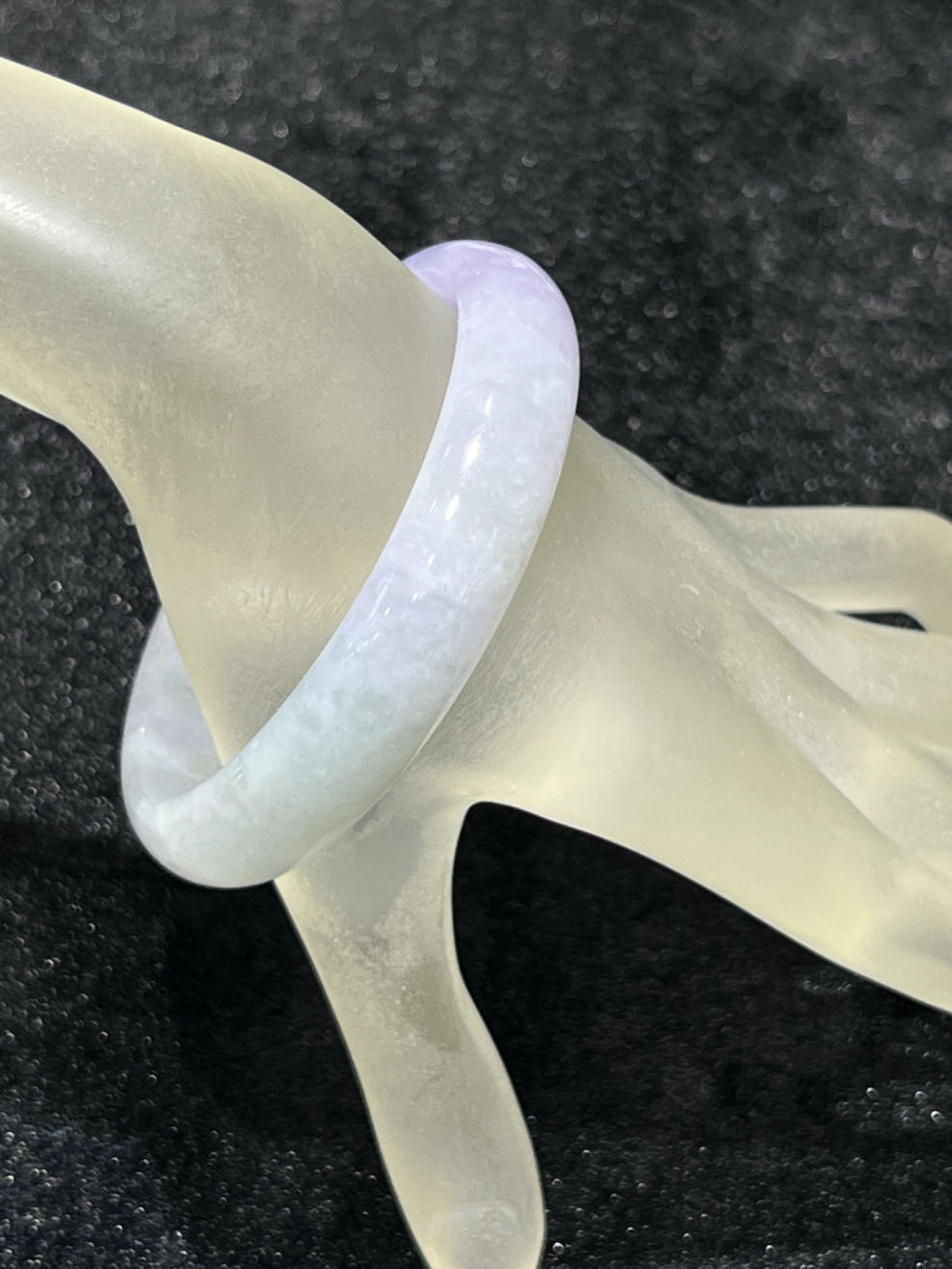 The jade bangle has a patch of very lovely pink lavender colour. The lavender jade bangle has very good translucency and fine jade texture.