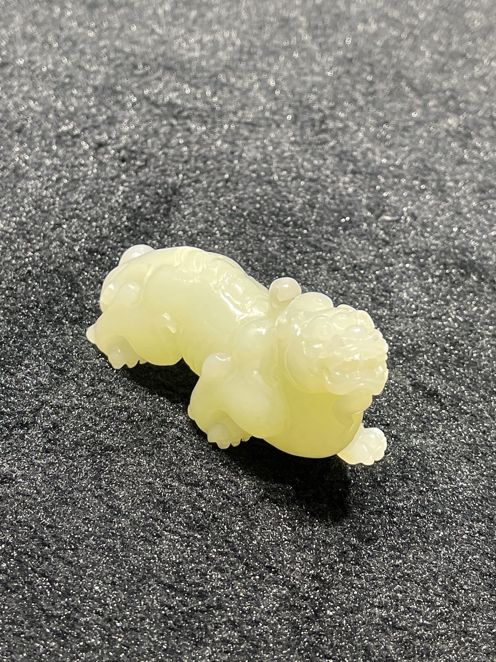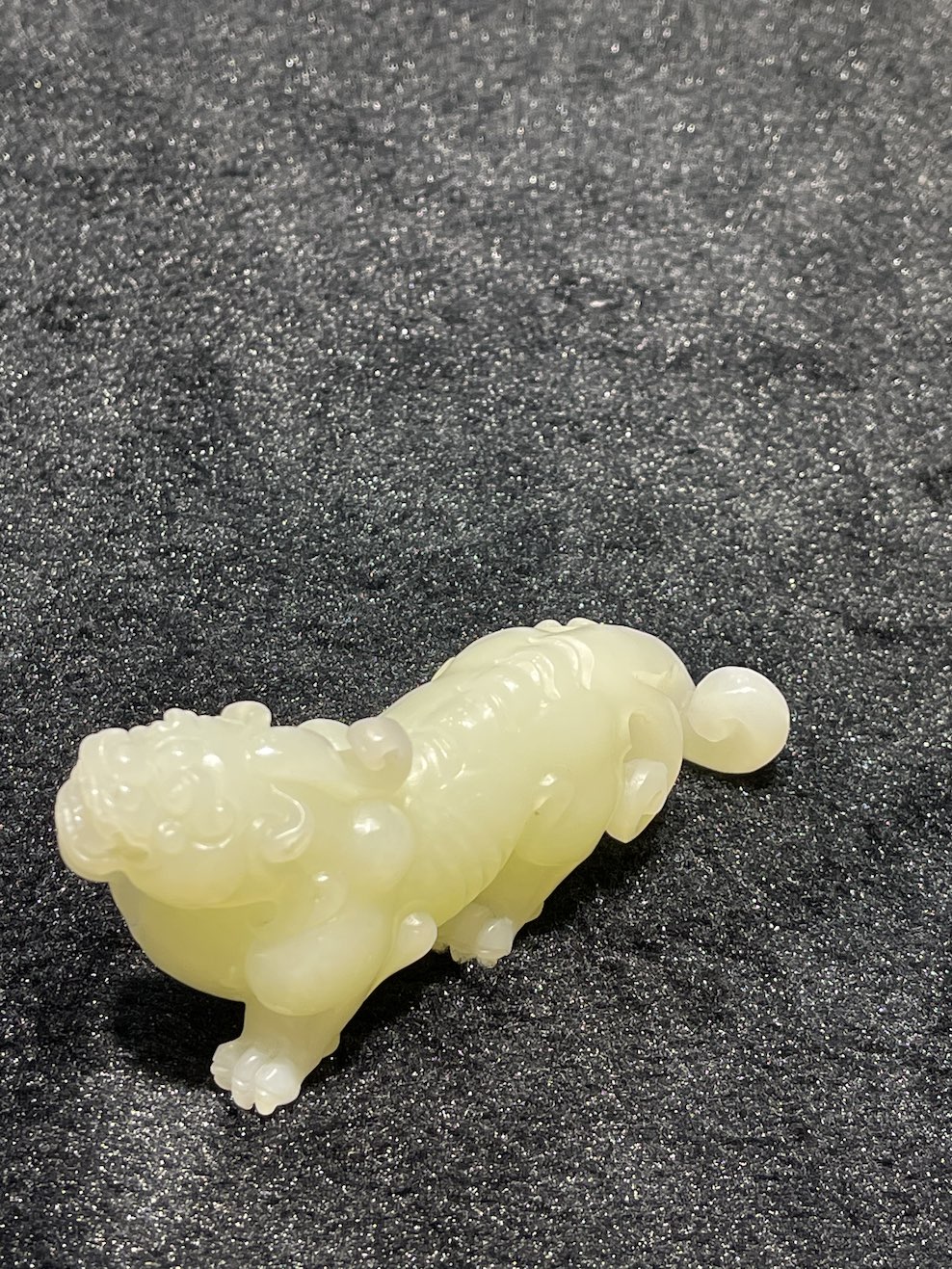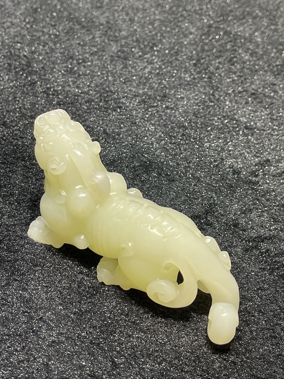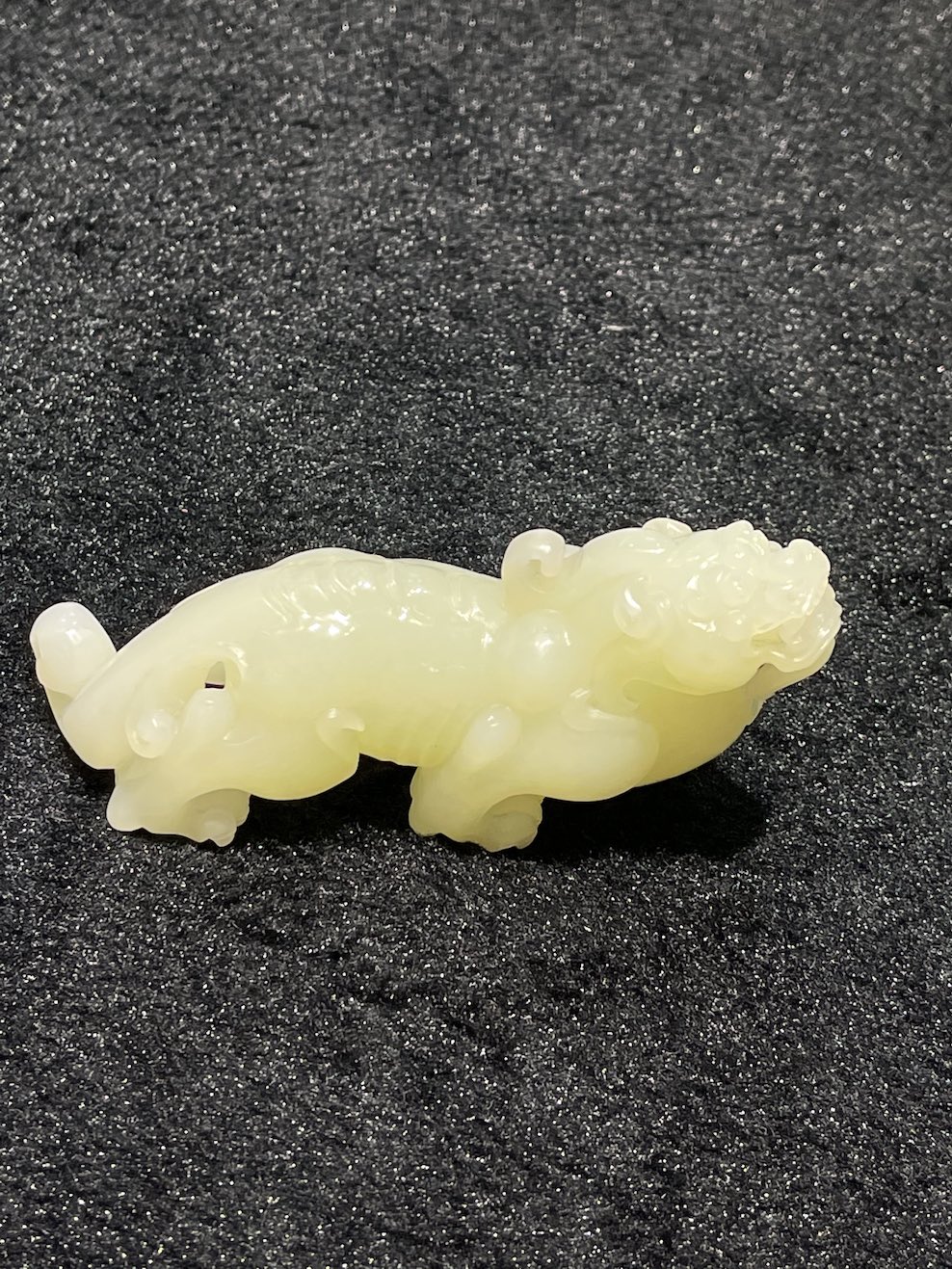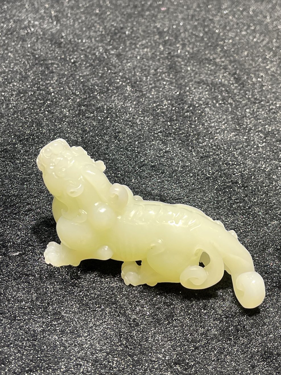 The nephrite jade is carving as a Pixiu ornament, the white jade also has very waxy texture.