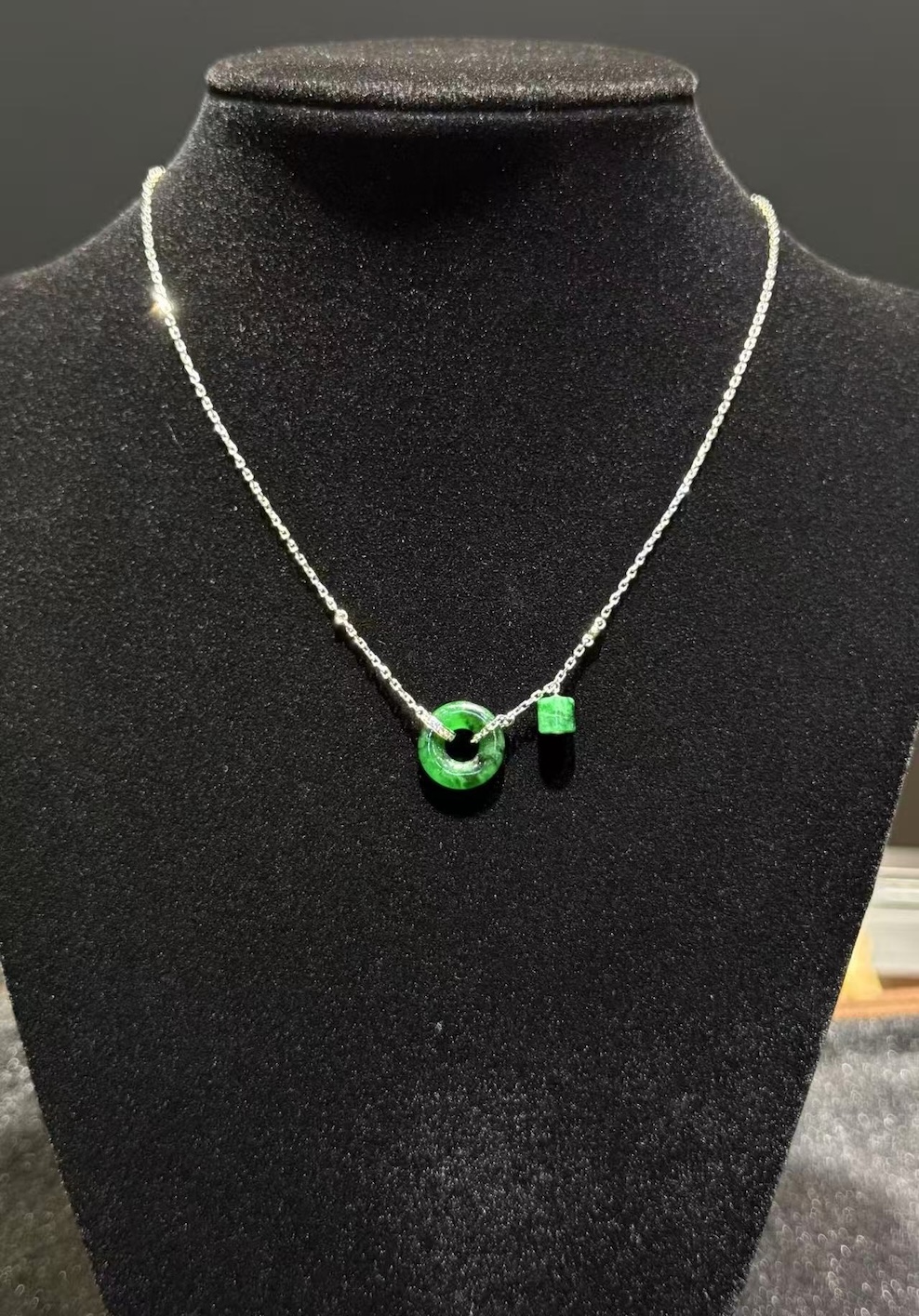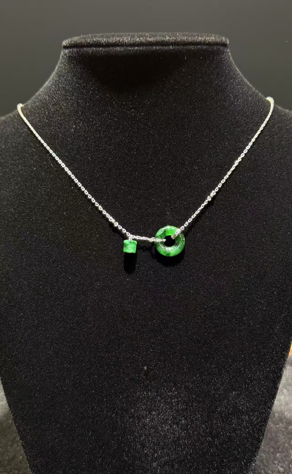 This exquisite Green Jadeite Safety Knot Pendant with Dangling Barrel reinterprets classic Chinese symbolism in a modern, minimalist design.
