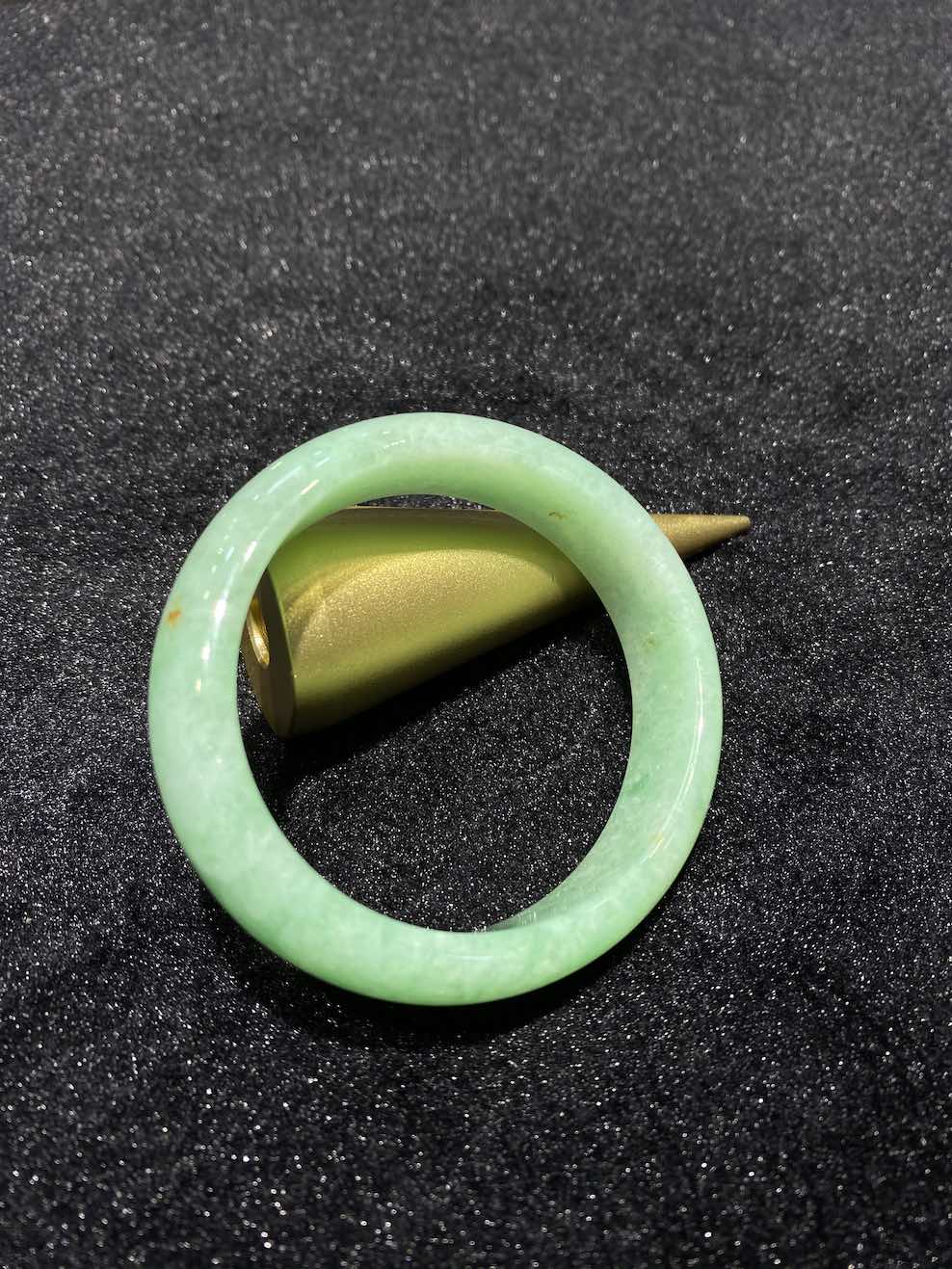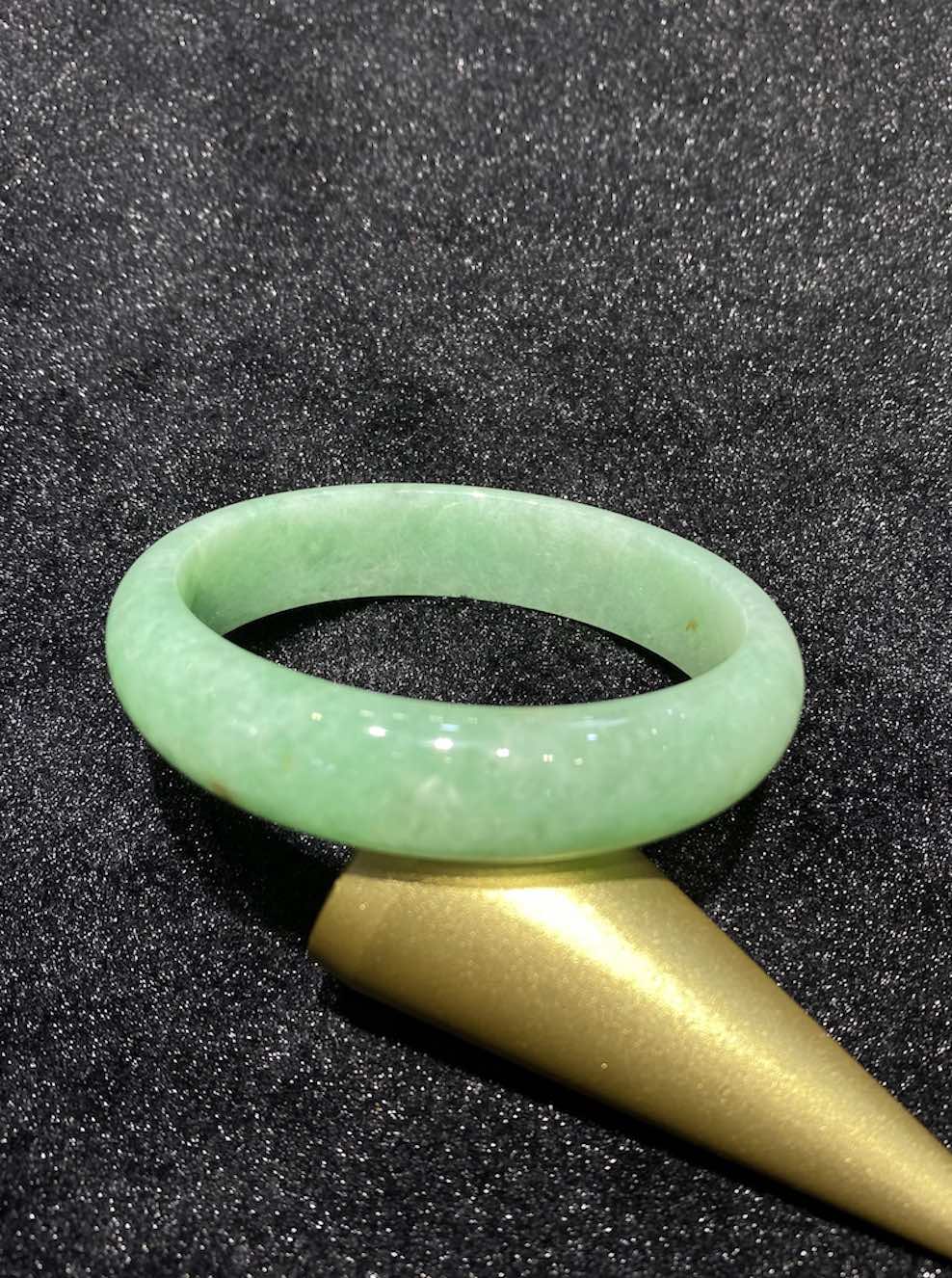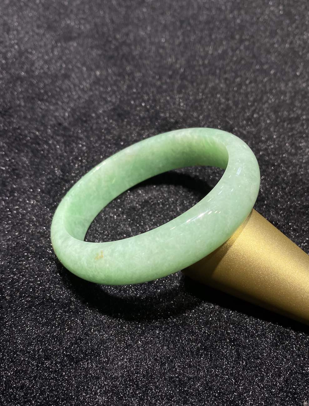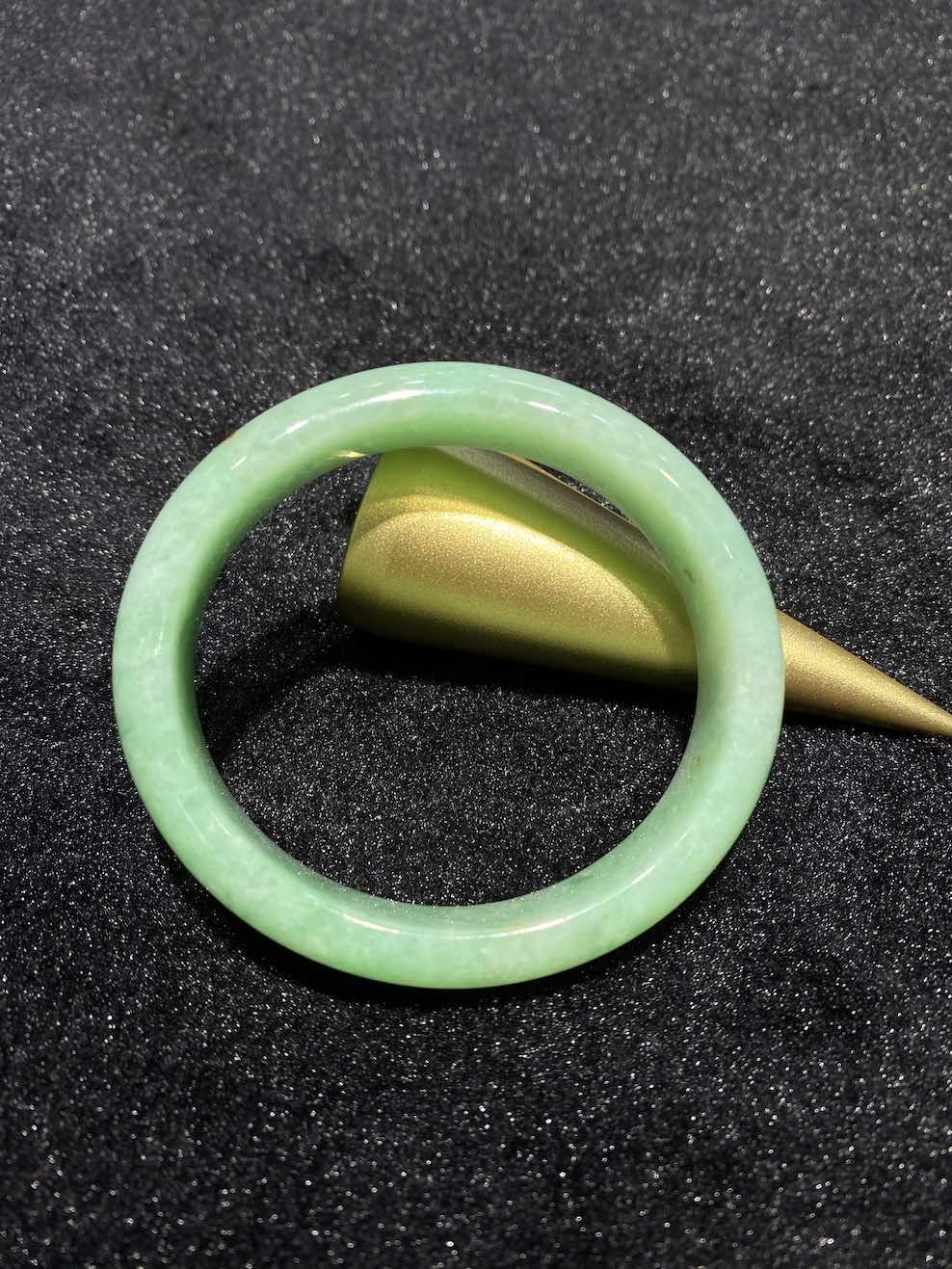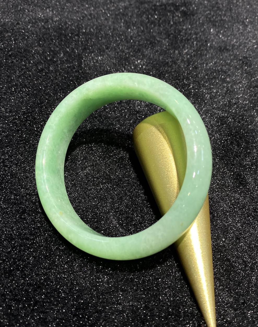 The oval shape jade bangle has very lovely apple green colour with very good translucency.