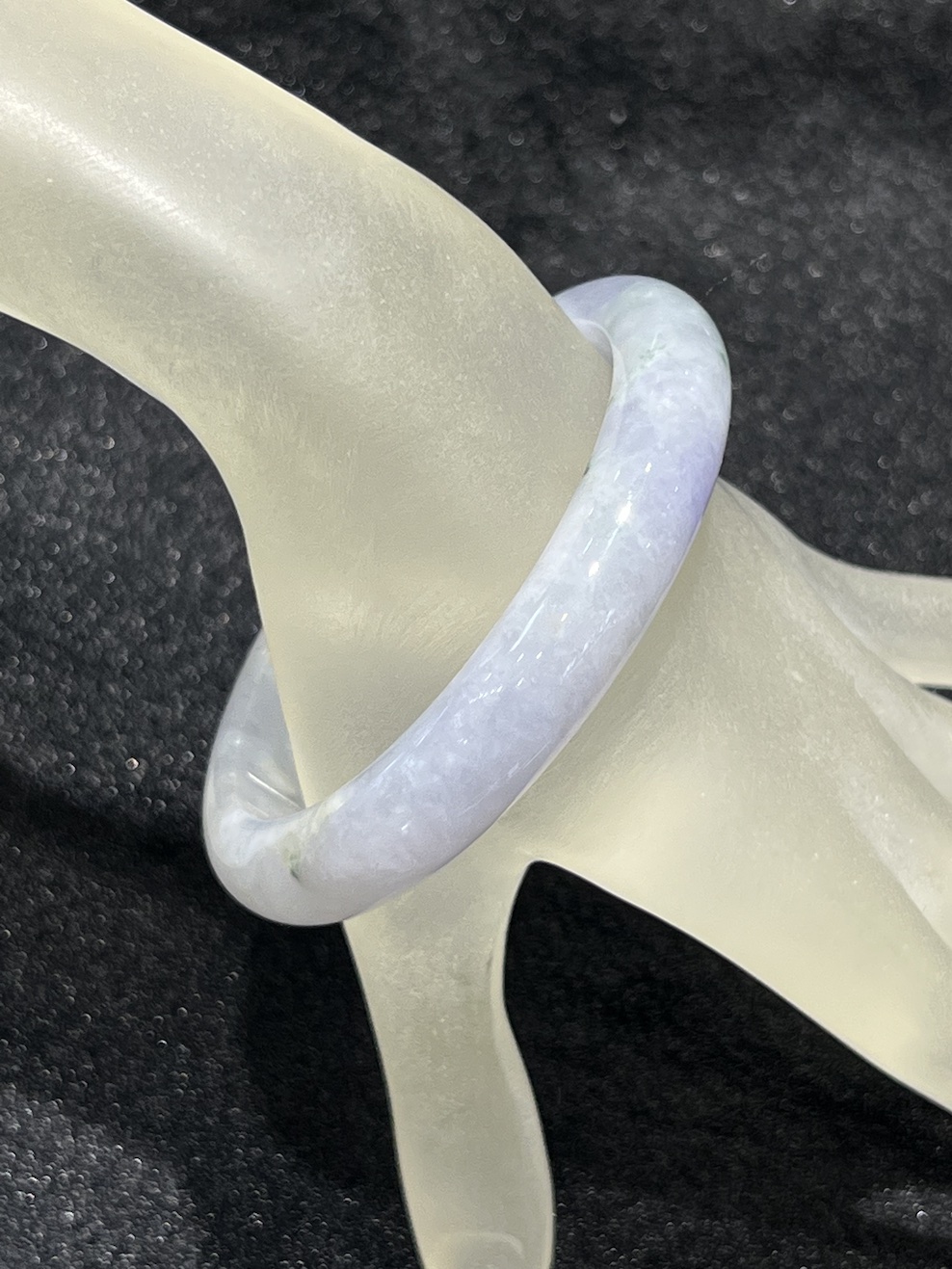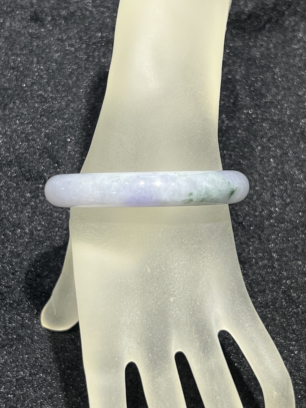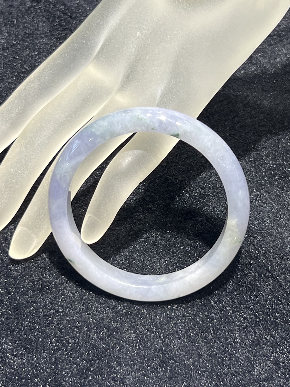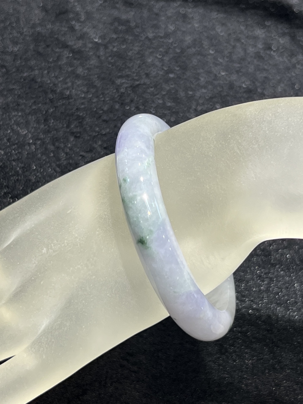 The jade bangle consists of lovely lavender colour with faint green patches. The jade bangle also has icy and translucent quality.