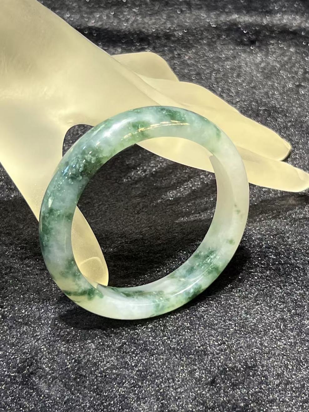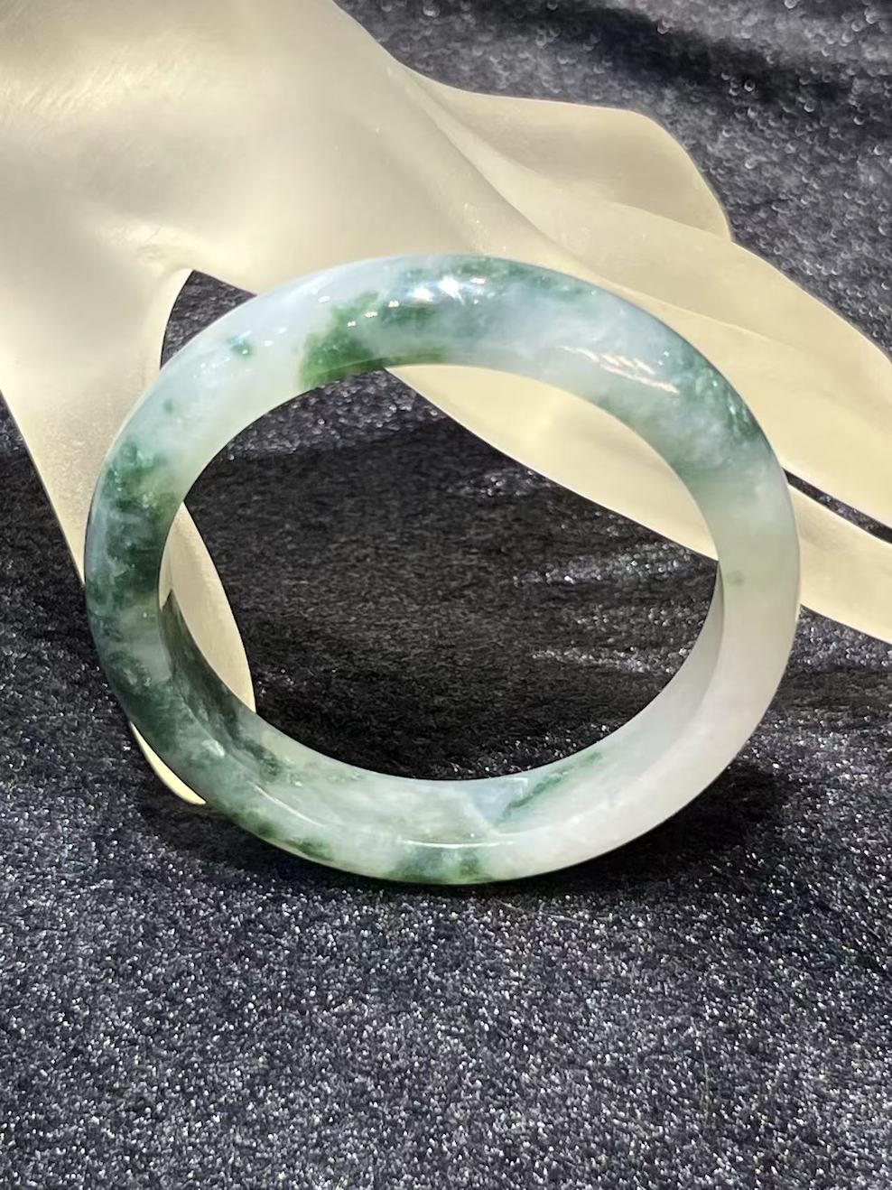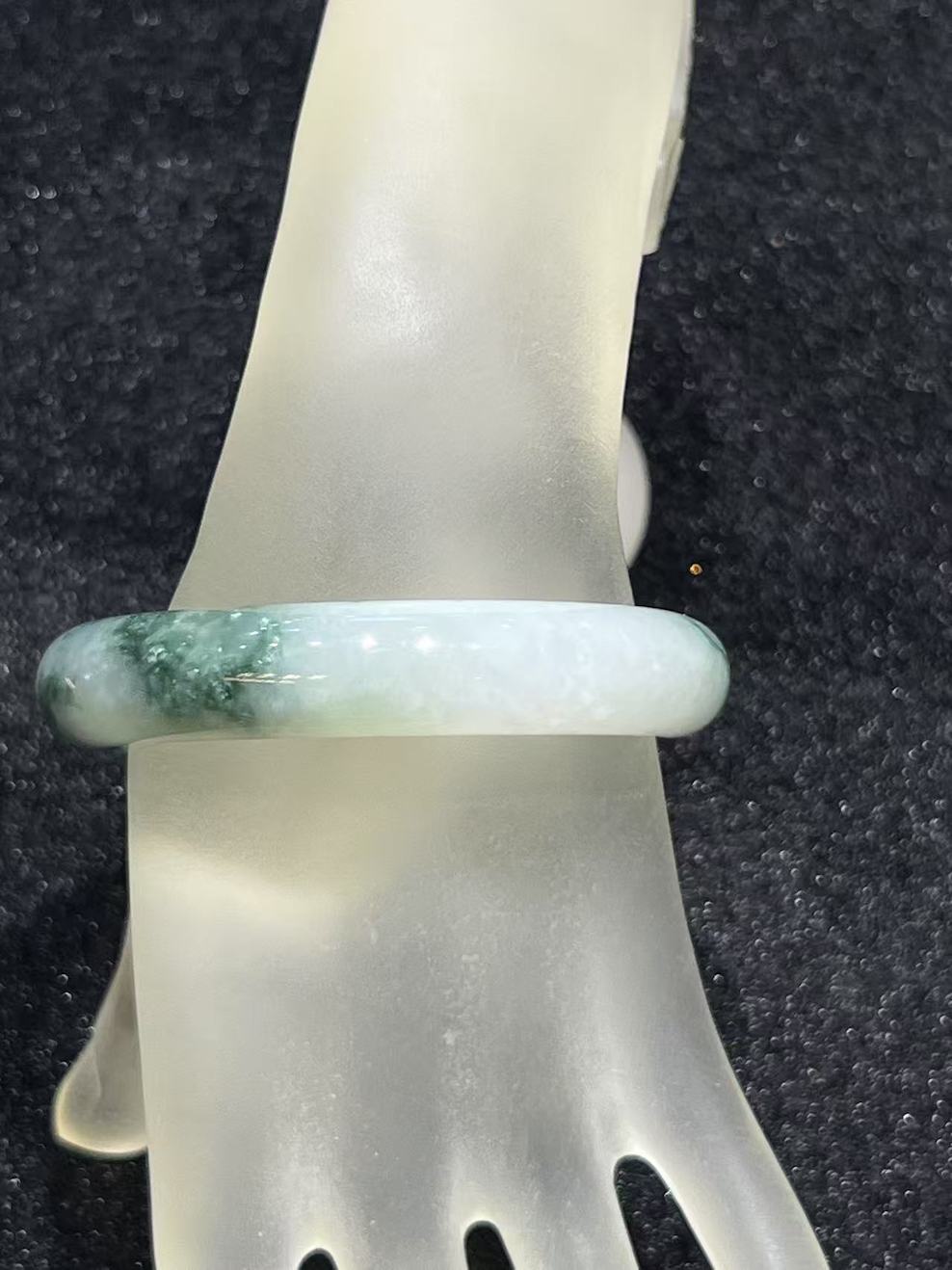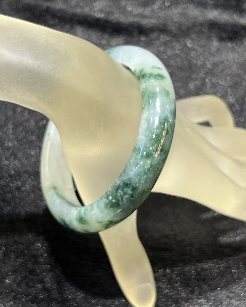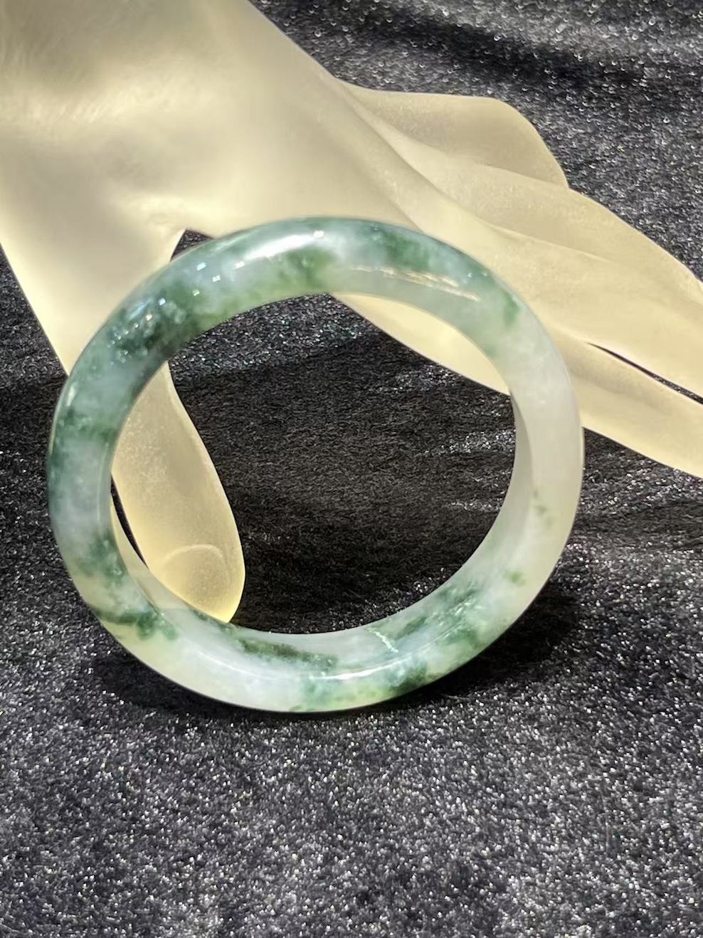 This elegant jade bangle showcases a beautiful translucent base accented with striking floral green inclusions that flow organically throughout the piece, resembling brushstrokes in nature’s own painting. The blend of clear and rich floral green tones lends a serene yet vivid character to the bangle. The smooth, rounded silhouette offers both comfort and classic refinement, while the natural floral patterns within the jade evoke themes of renewal, harmony, and growth. Ideal for daily wear or special occasions, this bangle is a graceful expression of natural beauty and enduring craftsmanship.