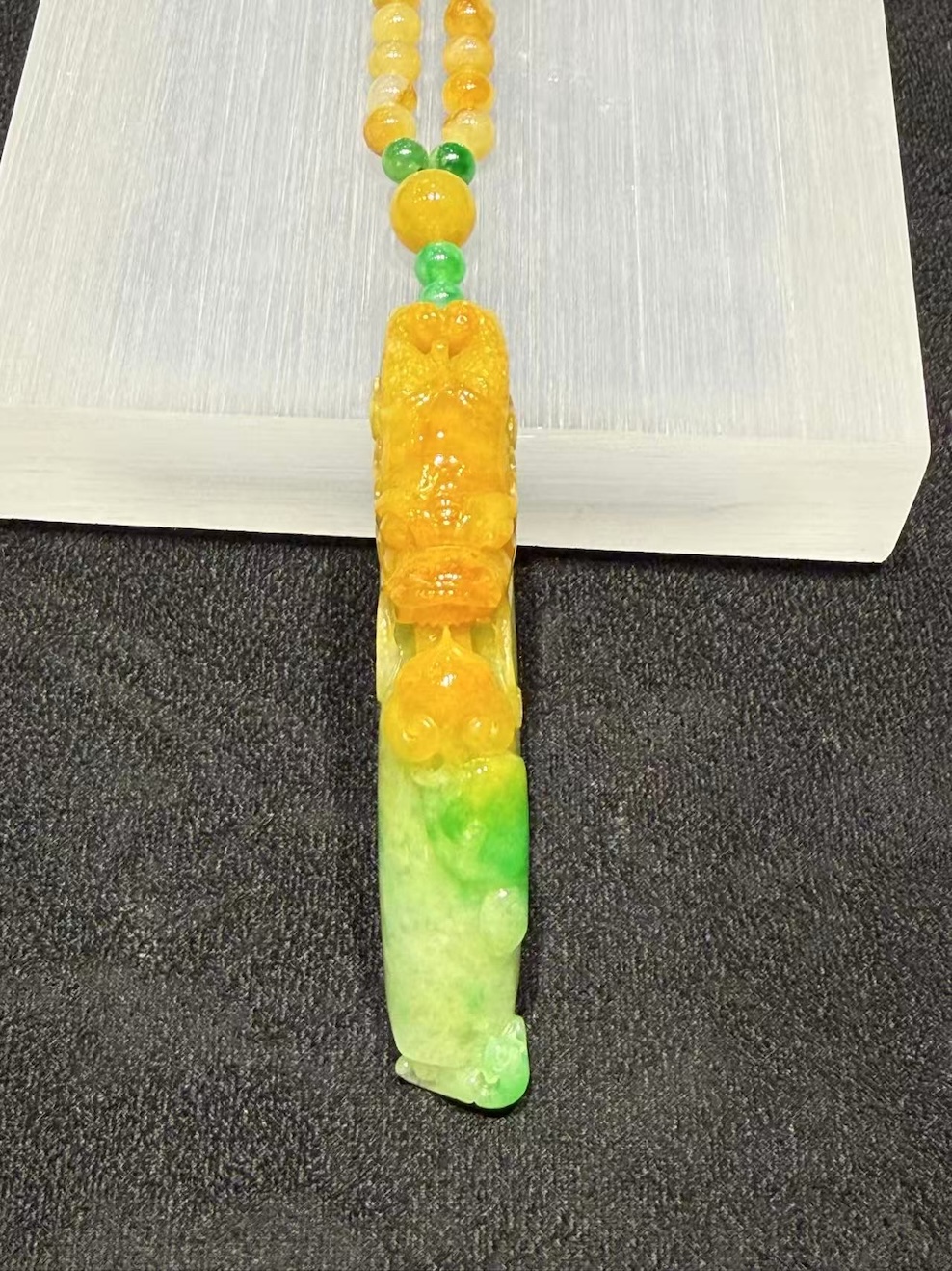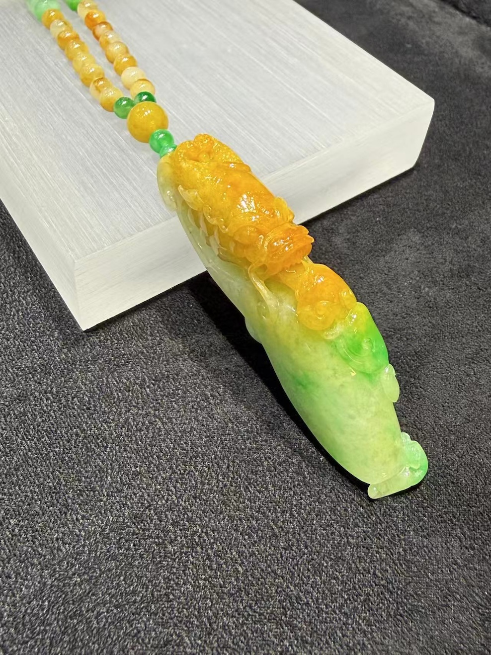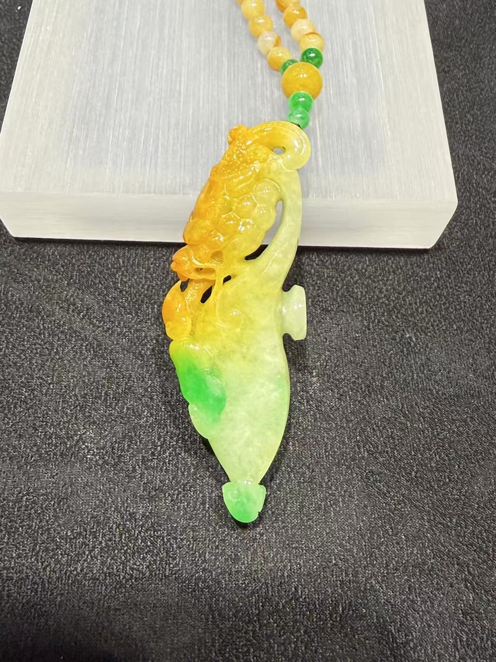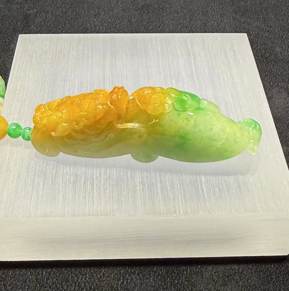 Finally, no two jadeite carvings form in the same way. The distribution of yellow and green tones will always differ slightly. Therefore, each yellow green dragon Ruyi jadeite pendant remains a one-of-a-kind piece shaped by nature and craftsmanship.